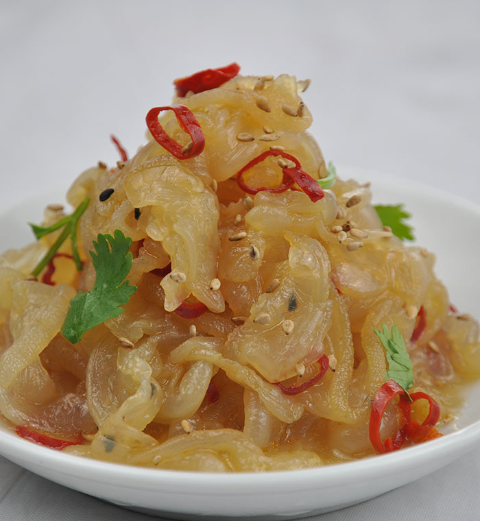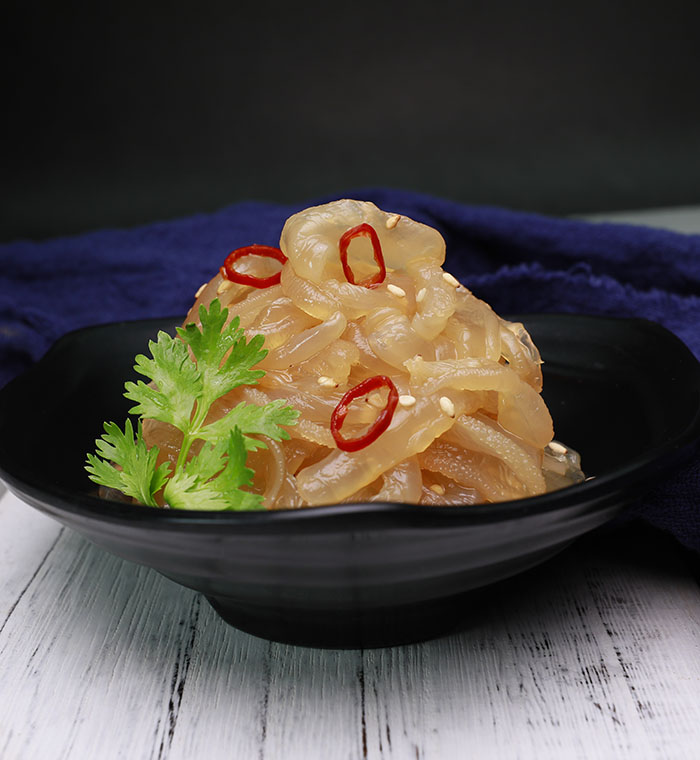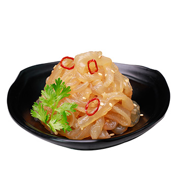 產(chǎn)品特點(diǎn):精選優(yōu)質(zhì)海蜇,色澤清麗、晶瑩剔透,Q彈有嚼勁、清香酸甜好味道