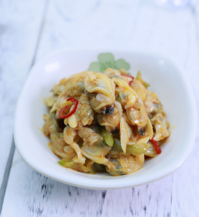 蛤肉、鹽漬裙帶菜(裙帶菜、食用鹽)、大豆油、綿白糖、芝麻油、味精、食用鹽、釀造食醋、酵母抽提物、香辛料、黃原膠、山梨酸鉀、食用香精香料